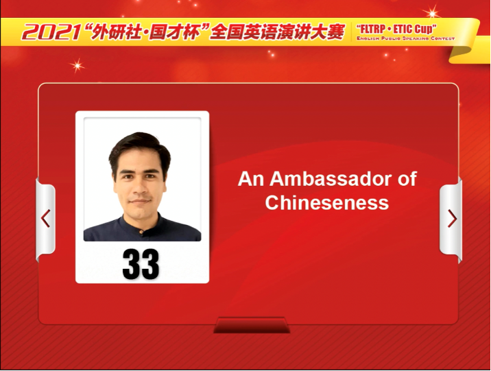 本年度“外研社.国才杯”全国大学生英语演讲比赛全国总决赛于今年11月-12月举行。外国语学院TESOC(Teaching English to Speakers of Chinese)研一墨西哥留学生Arriaga Gomez Francisco通过网络赛晋级全国总决赛,并在12月10日经过激烈的角逐,获得国家特等奖,同时以总分第二的优异成绩夺得总决赛亚军,取得本校参赛以来突破性成绩!