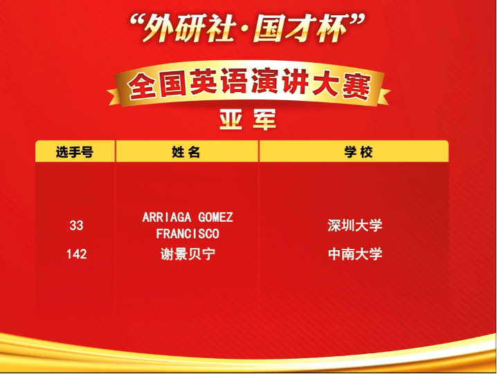 在此,我们祝贺Arriaga Gomez Francisco同学!并对关心和支持该赛事的学校领导、参赛组织、以及进行选拔及培训的老师们表示衷心的感谢!希望深大学子积极参加各类高水平比赛,努力进取,为学校赢得更大的荣光!