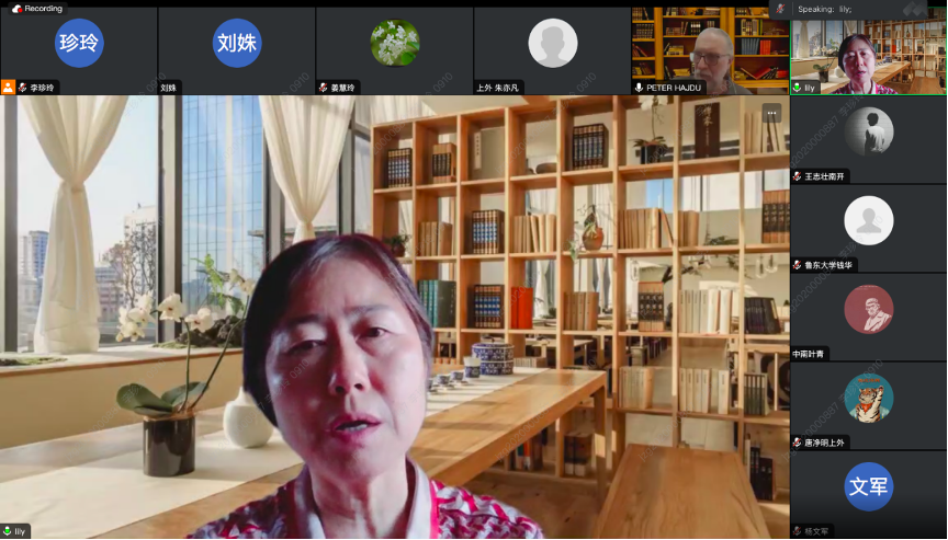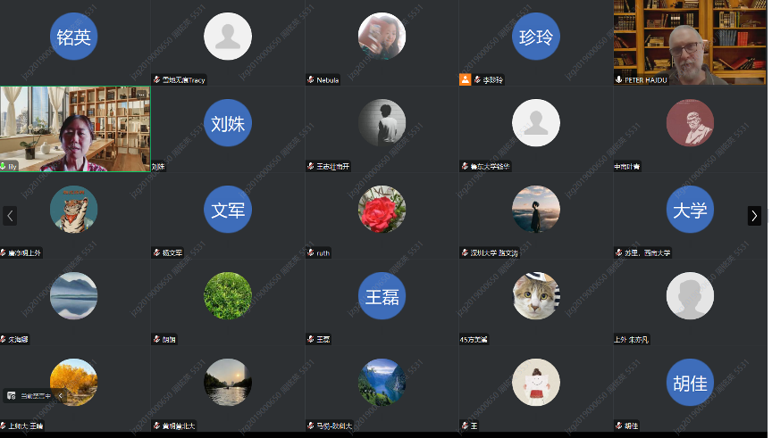 讲座主持人Péter Hajdu教授简单介绍了Neohelicon期刊的发展历程和研究领域,随后向我们介绍了主讲人曹莉教授以及她的系列著作。曹莉教授是清华大学人文学院外文系长聘教授,博士生导师,欧美文学研究中心主任,中国外国文学学会英国文学研究分会副会长、英语文学研究分会副会长、第八届国务院学科评议组成员。主要著作和编著有:《史碧娃克》《永远的乌托邦》《大学理念与人文精神》《文明的冲突与梦想》《艺术人文》《文学艺术的瞬间与永恒》《新旅程》《剑桥批评:中国与世界》等。最后Péter Hajdu教授还简要介绍了Neohelicon期刊中与中国英文研究历史相关的成果。