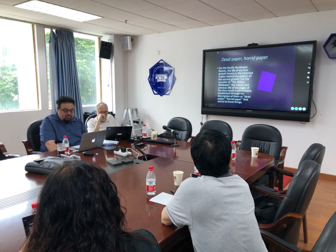 第二场讲座请来韩国成均馆大学Simon Estok教授分享其在生态批评领域的最新成果。Simon Estok教授以《物质生态批评、植物能动性与吉尔曼的短篇小说<黄壁纸>》为题,用生态女性主义的视角解读故事中女性叙述者与黄色壁纸之间的互动,认为女性从壁纸中看到了消逝的植物生命,女性与植物共同处于压迫和剥削之下。