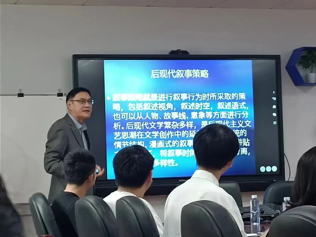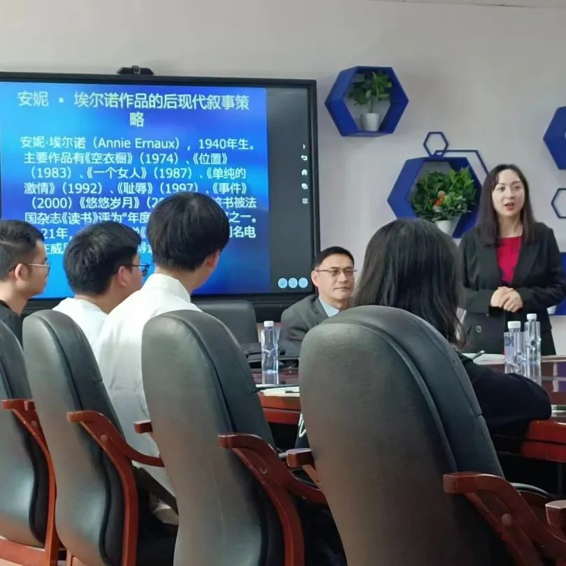 2023年4月4日下午,应深圳大学外国语学院邀请,浙江越秀外国语学院西方语言学院院长杨令飞教授来我校做《安妮•埃尔诺文本的后现代叙述策略》的主题讲座。杨教授30年前就与法国女作家安妮•埃尔诺书信往来,作为国内最早研究埃尔诺的学者,当日他给深大法语系的师生们带来了一场奇妙的视听盛宴,现场反响热烈,思维的碰撞引燃学生对文学讨论的烈焰。