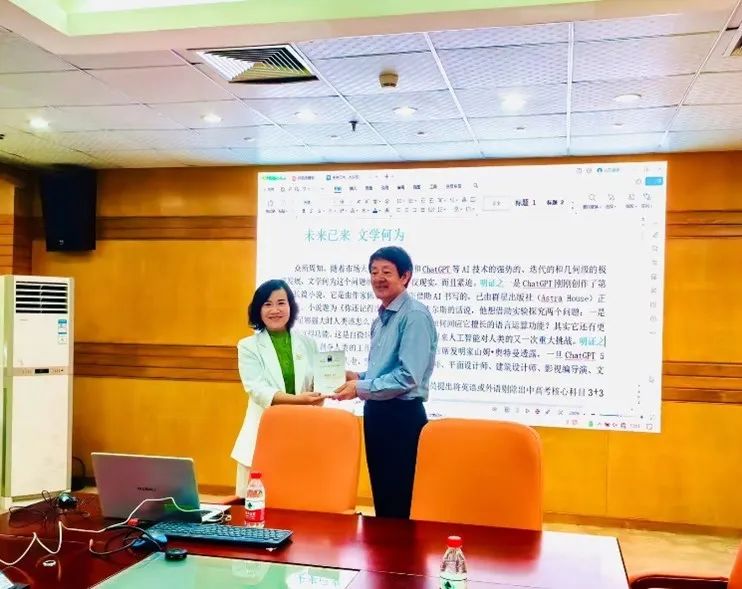 2023年9月22日上午,在深圳大学粤海校区汇典楼2楼会议室举行了学术讲座——“未来已来,文学何为?”本次讲座由深圳大学社会科学部与外国语学院共同主办,由外国语学院院长戴永红教授主持,深圳大学副校长张晓红教授出席,主讲嘉宾为德高望重的陈众议教授。讲座一开始,张晓红为陈众议颁发了“深大讲坛纪念牌”,由此彰显了深圳大学40周年校庆千场学术活动第1354场、“深大讲坛”第183讲的高层次、高水平。陈众议是中国社会科学院学部委员、全国人大常委会委员、国家社科基金外国文学评委会召集人、湖南师范大学“潇湘学者”特聘教授、西班牙皇家学院通讯院士、中国当代批评家、翻译家、作家等。他曾获得留学归国人员成就奖,被列为首批国家高层次人才特殊支持计划领军人才,同时他还曾担任中国社会科学院外国文学研究所所长、中国外国文学学会会长、中国译协副会长、中国作协全委会委员等,他在这些学术和荣誉职务上均有卓越贡献。陈教授主要从事西语文学和文艺学研究,出版《拉美当代小说流派》《西班牙文学黄金世纪研究》《亲爱的母语》《想象的边际》等专著、文集十余种,发表学术论文和书评二百余篇。