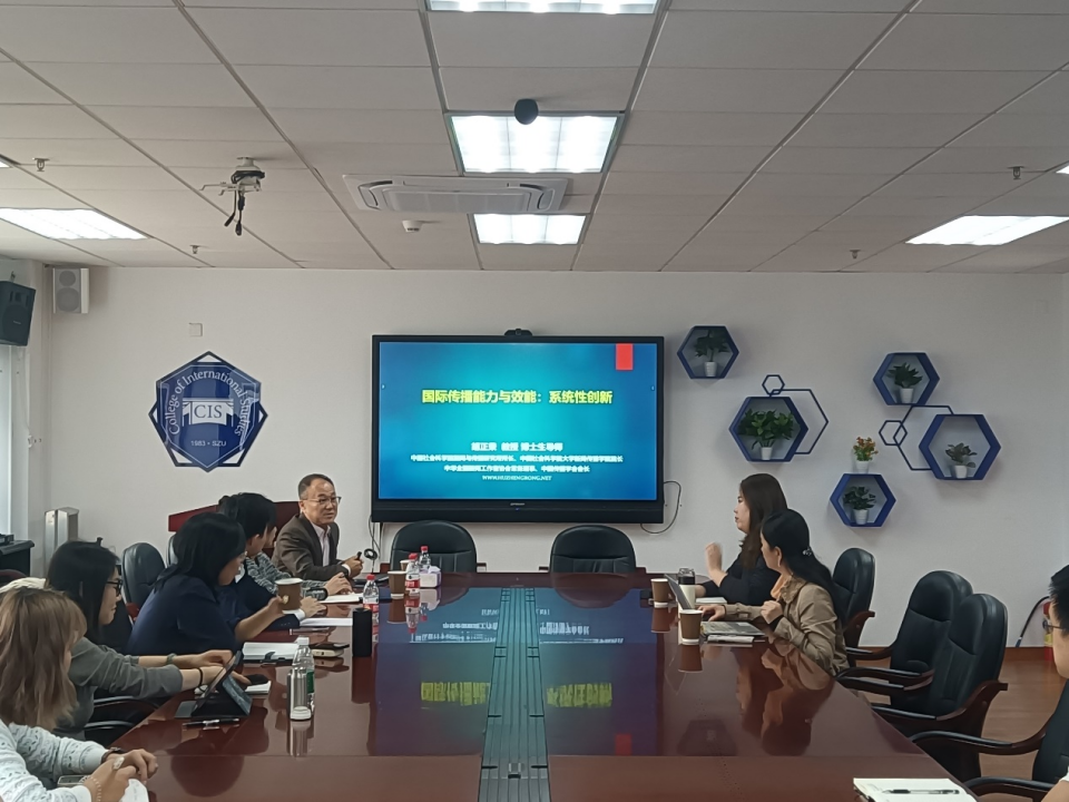 2023年12月1日下午,在深圳大学粤海校区汇文楼1200会议室举行学术讲座“国际传播能力与效能:系统创新”。本次讲座的主讲嘉宾为胡正荣教授,现任中国社会科学院新闻与传播研究所所长、中国社会科学院大学新闻传播学院院长。讲座由外国语学院副院长张丹阳教授主持,众多师生参加。