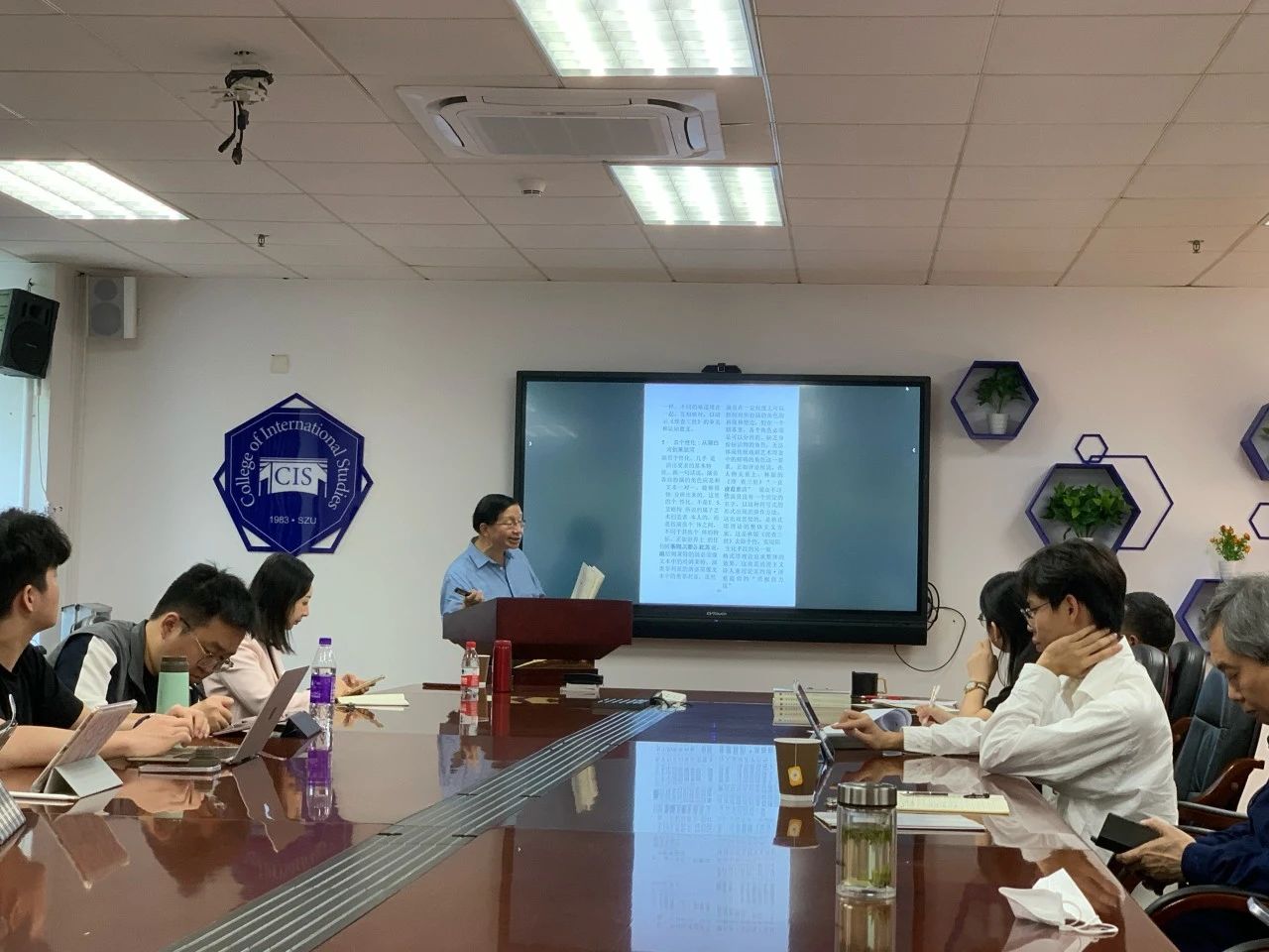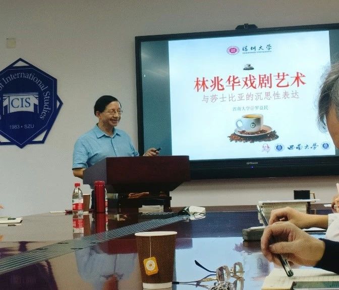 2023年12月15日上午,深圳大学外国语学院有幸邀请到西南大学罗益民教授做了一场题为“林兆华戏剧艺术与莎士比亚的沉思性表达”的学术讲座,此次讲座由深圳大学外国语学院张广奎教授主持,社科部副主任翁冰莹教授出席讲座。