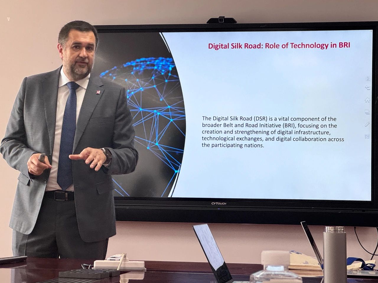 博扬·拉利奇教授首先探讨了“一带一路”倡议的发展环境,回顾“一带一路”倡议第一个十年成就。这其中包括丝绸之路历史及其对现代“一带一路”倡议的影响,强调了文化和知识交流的重要性,并讨论了技术进步、政治稳定如何促进国际合作。值得一提的是,拉利奇教授围绕习近平主席在第三届“一带一路”国际合作高峰论坛开幕式上的讲话展开解析,讨论了在重大变革背景下如何实现发展目标。会上,拉利奇教授高度肯定了中塞两国在经贸、基础设施、教育、科技和文化等领域的合作现状。特别是在基础设施建设方面,中塞已经成功完成了多个重要项目,这些项目的实施不仅促进了当地经济的发展,也增进了两国人民之间的友谊。