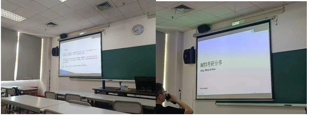 9月21日下午,英语会议口译专场招生宣传活动在汇文楼H5-101教室以线上腾讯会议和线下宣讲两种形式同时进行。主讲老师为翻译专硕(MTI)项目负责人尚小奇副教授。尚小奇老师指出,深圳大学外国语学院的翻译专业型硕士的培养方向主要是英语会议口译,即重在培养具有开放的国际视野、精湛的翻译能力及相关领域知识的高层次、应用型、专业化语言人才。该项目的特色在于与经济学院、传播学院共享师资,打造“口译+金融科技”的人才培养模式。此外,该专业以小班教学(10-14人)为主,有两个学期的同声传译课程且每周4个学时,以此保证每个同学都有充分的学习和练习机会。接着,尚老师强调了深大外院在师资力量、学科资源和硬件设施三方面的优势,介绍了该专业的课程设置和实习与访学机会。随后,毕业于深大外院的2023级英语口译会议专业硕士研究生刘宛沂同学就考研动机、备考书单与公众号、就读体验等内容作了简要分享,在答疑环节,尚小奇老师回答了线上同学关于考试形式与考核要求的具体问题,并表达了对各位同学的欢迎与期待。