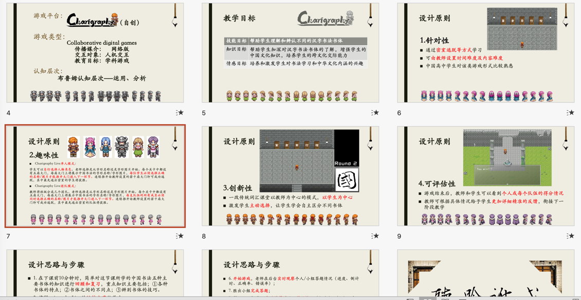 游戏化教学环节《Fivetypesof calligraphy:charigraphy》