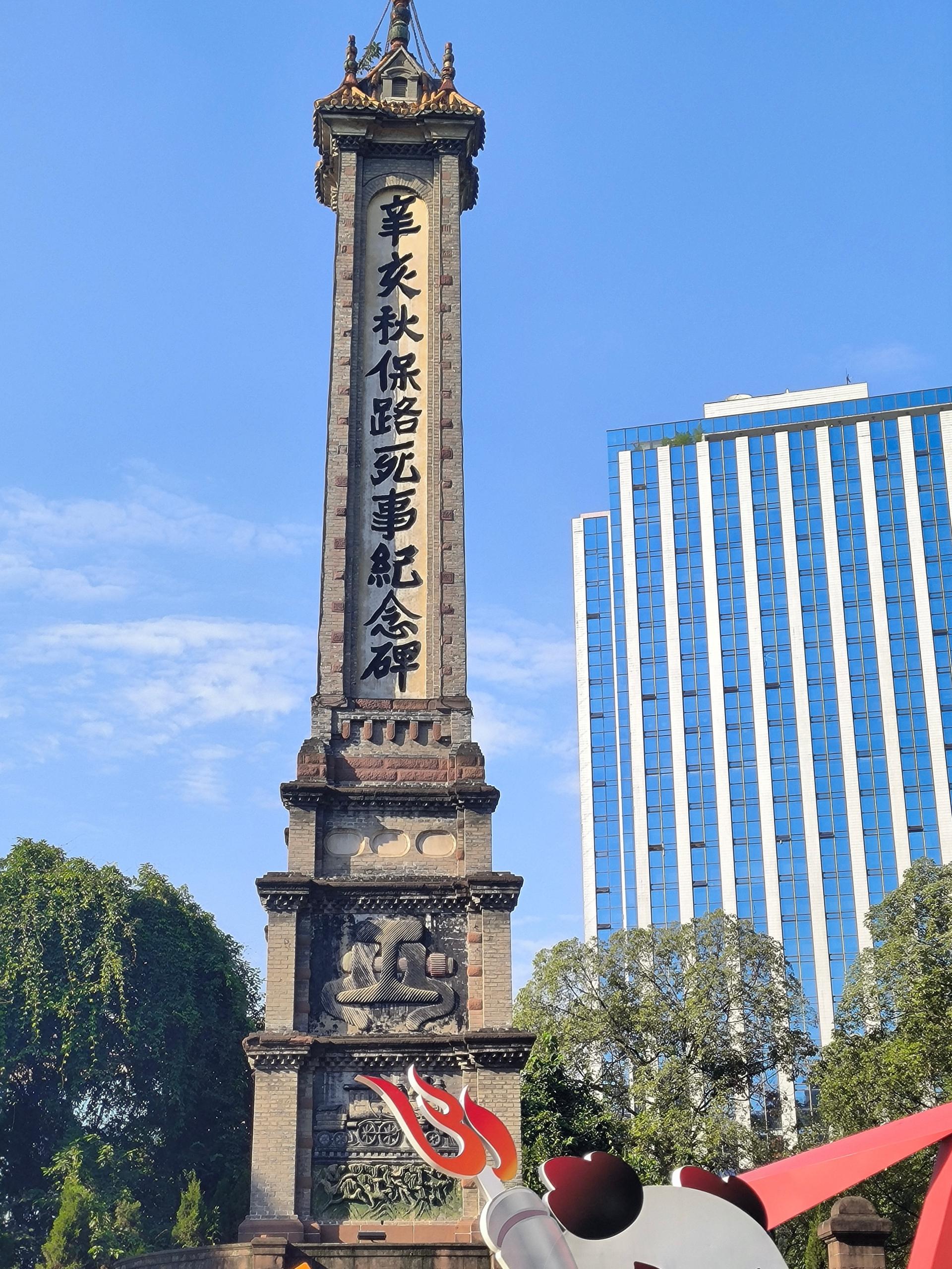 今年暑假我和父母一起去了成都,这是一座富有历史气息的城市。在这座城市里,令我印象最深刻的不是四川博物馆,也不是成都博物馆,而是人民公园中的辛亥保路死事纪念碑。