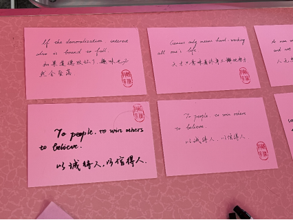到场学生表示,此次活动别开生面,中英文书法的展示形式,在开展学生资助诚信教育的同时,又能弘扬中华优秀传统文化。寓教于乐的方式真正让学生资助诚信教育走入广大学子的内心,助力深大学子成人成才。