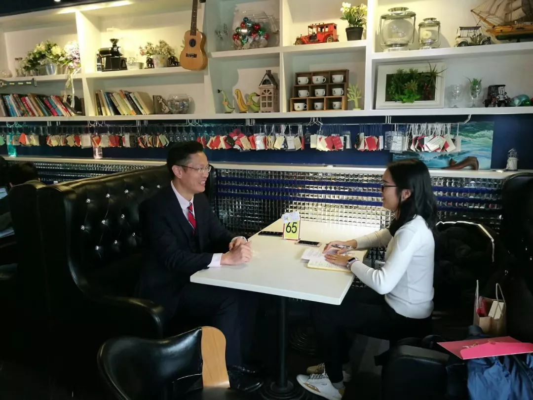 受外国语学院校友会邀请,蔡勇弟专程回到深大接受采访。采访伊始,蔡勇弟说:“我们就随便聊聊,交流交流。有什么想了解的,都可以问。”语气亲和,说完咧开嘴哈哈大笑,没有一点架子。