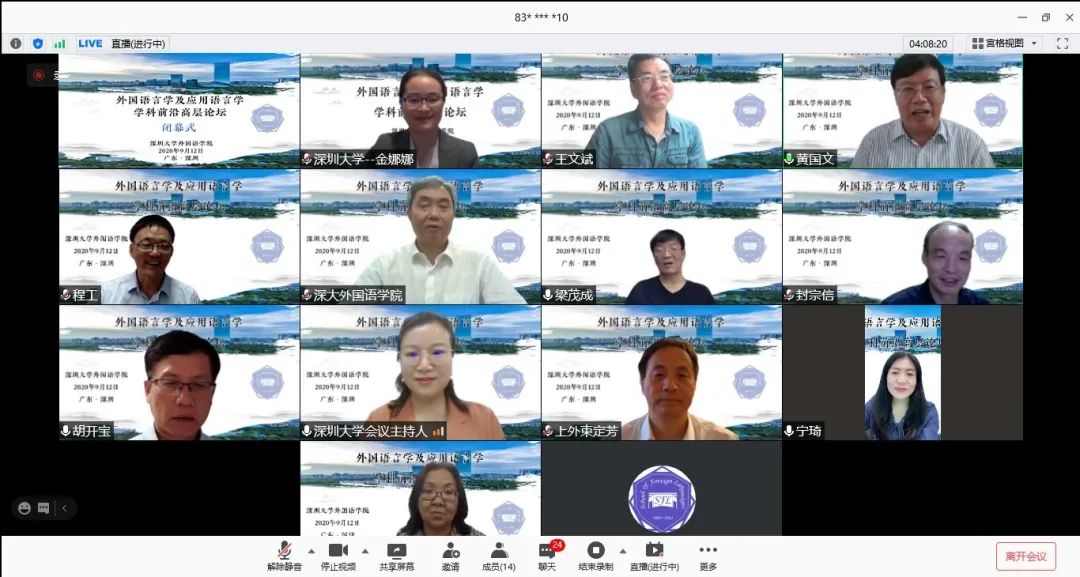 On September 12, 2020, The School of Foreign Languages of Shenzhen University successfully held the "Advanced Forum on Frontiers of Foreign Linguistics and Applied Linguistics" in the form of live webcast and off-line seminar. The forum invited 10 leading scholars in the field of foreign linguistics and applied linguistics to make keynote speeches. The live streaming of the conference has been watched by more than 7,000 people.