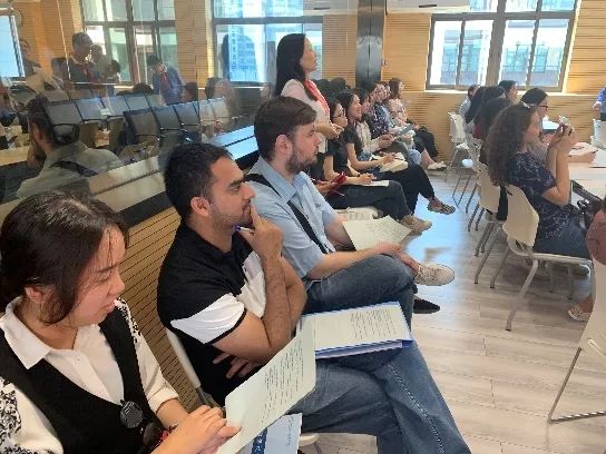 课后,陈锫博士与参加活动的教师们一起回顾了Delfino老师的示范课。她对Delfino的教学效果给予高度评价,并引导中外学生们从高品质示范课中学习教学理论的运用和教学活动设计。