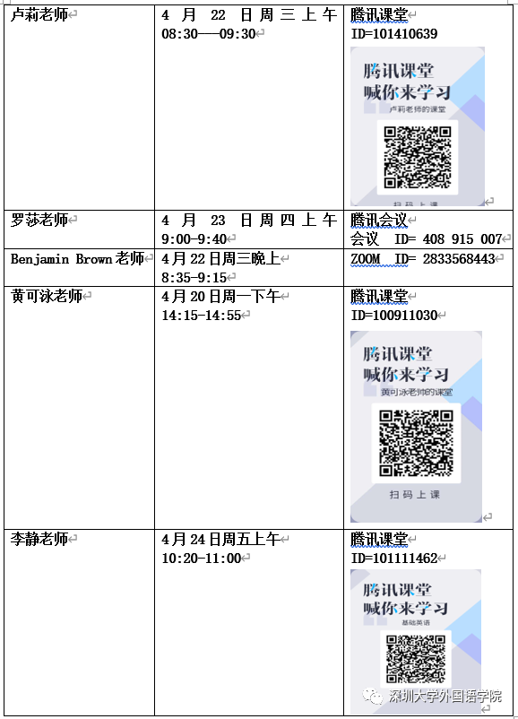 疫情让我们保持距离,网络却把我们拉得更近。在线授课对传统授课方式是一个巨大的挑战,但无疑为老师们打开了新的窗口。我们固然怀念和同学们面对面交流时的畅快,怀念对学生学习状态的掌控感,但每一位老师多年工作的积累和形成的风格并不会被线上课堂掩盖。此次线上英语课堂开放周将开放各教学组的一门代表课程,包括英语辩论、雅思写作、大学英语读写和研究生英语精读等,涉及的教学软件有腾讯会议、腾讯课堂,雨课堂等。开放周是深大外院大英部老师们疫情期间工作状态的展示,也是同行间彼此学习交流的机会。我们虽然身处各地,但希望在网络相聚,在每一次线上课堂相聚,一起徜徉在春天的风里。