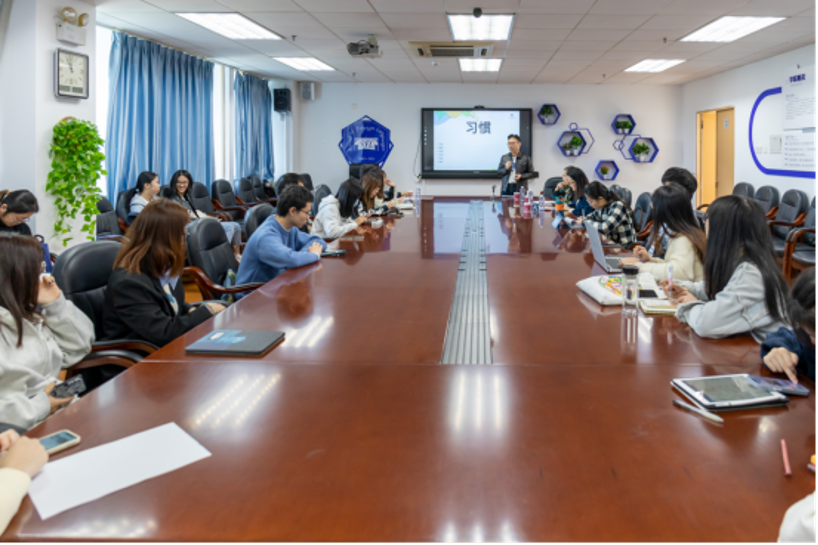 2021年12月1日上午10时30分,深圳市南山外国语学校(集团)课程教学中心主任兼任南外(集团)文化学校教务主任梁天健在外国语学院在汇文楼1200会议室给英语(师范)的同学们带来了一场精彩的讲座--教师的五阶成长。讲座由英语系副主任仲冬主持,副院长贾陆依、院长助理兼英语系主任金娜娜参加了讲座。