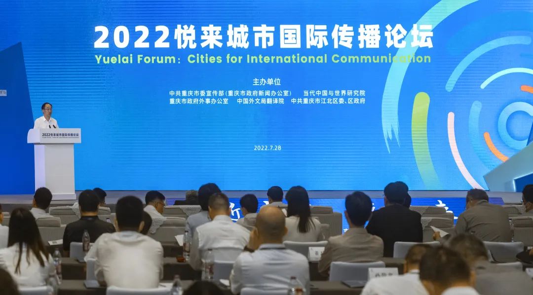 7月28日,深圳大学外国语学院院长、区域国别与国际传播研究院院长戴永红教授应中国外文局邀请参加“近者悦,远者来”——2022悦来城市国际传播论坛。本论坛由中国外文局支持,重庆市委宣传部(市政府新闻办)、市政府外办、当代中国与世界研究院、中国外文局翻译院、重庆市江北区委、区政府共同主办。本次论坛的主题是“城市与国际传播”,旨在搭建平台,聚集学界业界人士、城市管理者等,共商城市国际传播,推动交流合作,共建城市发展共同体。中国外文局局长、中国翻译协会会长杜占元,重庆市委常委、宣传部部长姜辉出席论坛并致辞。中国外文局副局长、全国翻译专业学位研究生教育指导委员会主任于涛出席论坛。复旦大学中国研究院院长张维为,中国人权研究会副会长、吉林大学法学院教授鲁广锦,重庆市江北区委书记滕宏伟,中国网总编辑王晓辉,四川外国语大学校长董洪川作大会演讲。来自清华大学、复旦大学、浙江大学、中国社会科学院、外交学院、北京外国语大学、中国传媒大学、中央民族大学、暨南大学、重庆大学、西南大学、西南政法大学、深圳大学、广东外语外贸大学、四川外国语大学、重庆工商大学和西南科技大学等近40位智库专家、知名学者,围绕“城市即国际传播主体:政府·民间·KOL”“城市即国际传播客体:社区·地理·人文”“城市即国际传播载体:媒介·符号·故事”“中国翻译名家江北嘴对话:翻译助力城市国际传播”等主题在四个分论坛发言。四场分论坛分别由西南政法大学人权研究院、西南政法大学新闻与传播学院、四川外国语大学国际传播学院、重庆市外事翻译中心承办。
