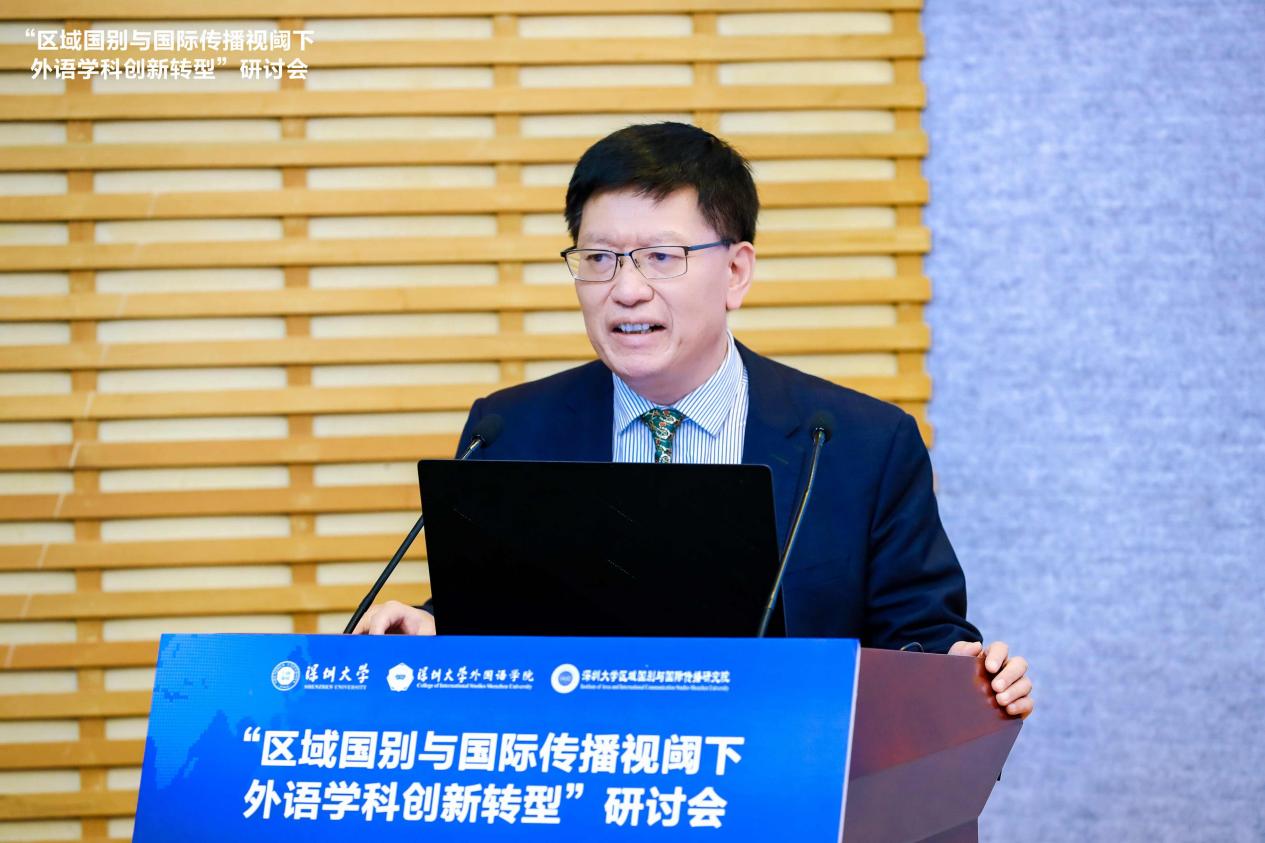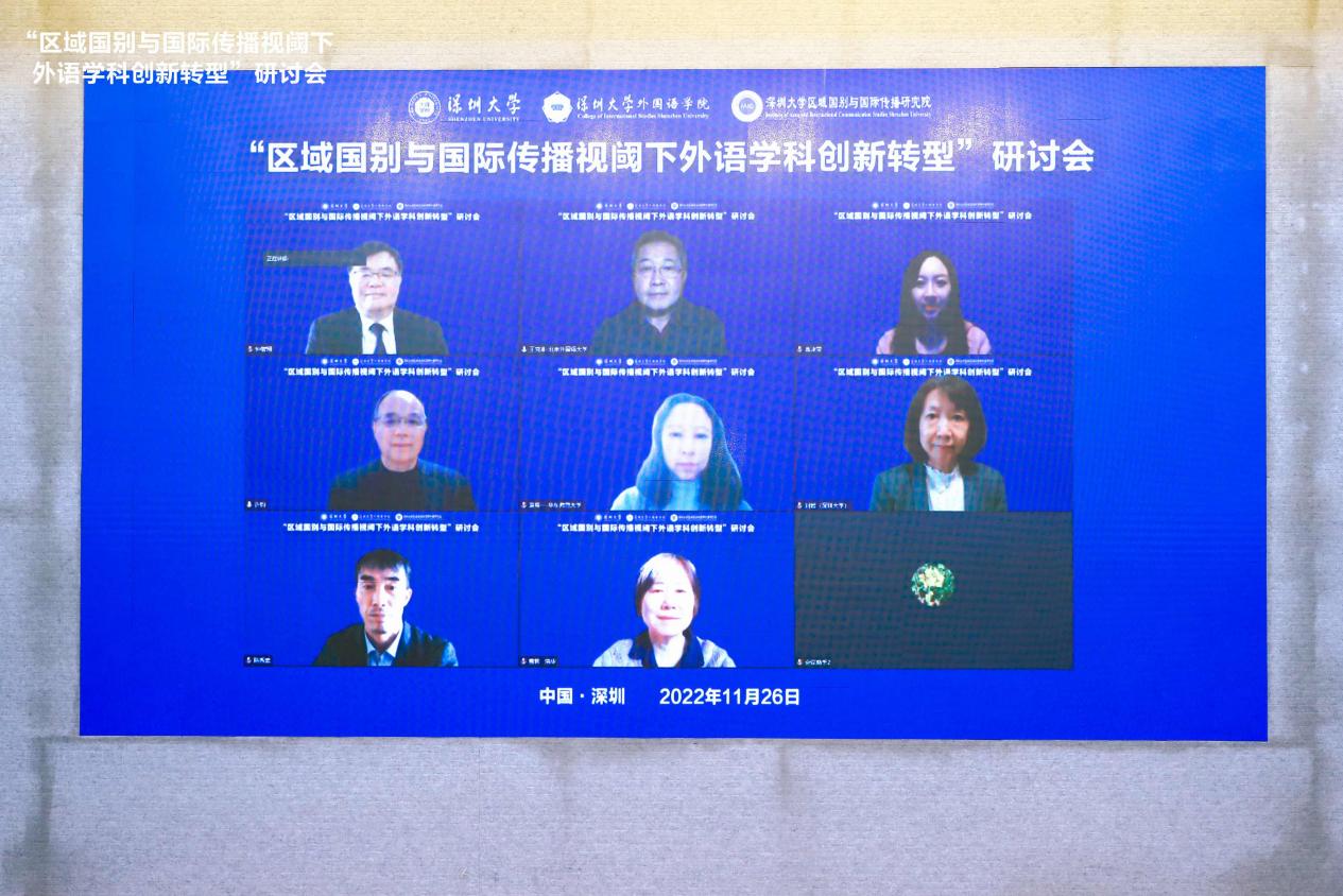 2022年11月26日,为推进新文科建设和外语学科转型发展、加强区域国别研究和跨文化国际传播研究,由深圳大学外国语学院、区域国别与国际传播研究院联合主办的“区域国别与国际传播视阈下外语学科创新转型”研讨会以线上线下结合方式在深圳大学粤海校区成功举办。本次研讨会设置了大会主旨演讲环节以及“新文科和国际传播视阈下外国文学研究发展与创新”“对外话语体系构建视阈下外国语言学及应用语言学发展与创新”“跨文化研究与跨文化传播视阈下翻译学发展与创新”和“外语学科视角的区域国别与国际传播研究”等四个分议题,聚焦新时代新征程上,外语学科如何推动创新改革,培养具有国际视野和胜任力的跨学科、复合型外语人才,服务于“一带一路”和“双区”建设等国家重大发展战略。