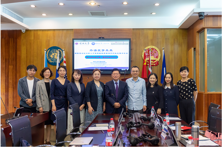 副院长贾陆依对外国语学院国际组织人才培养、英语戏剧特色班、英汉高级口译、国际新闻与外事英语等微专业进行了介绍。副院长胡亦杰提到,将思政融入课堂是润物细无声,大学英语部在党建+竞赛、课程+思政两方面探索如何融通中外语言、讲好中国故事。西语系主任兼党支部书记赵燕对西语系支部作为广东省标杆优秀样板支部的思政教育和实践教育进行了分享,她提到教师和学生联动建设大力推动了支部项目的落地。法语硕士点负责人翁冰莹介绍了学院新增的二级学科法语语言文学硕士点和法语联盟在深圳大学的落户。院长助理黄乐平介绍了西班牙语语言文学硕士点近三年的建设情况和近期举办的区域国别知识竞赛的概况。区域国别知识竞赛的宗旨是“让中国了解世界,让世界了解中国”,初赛采用英、日、法、德、西五个外语语种,决赛回归汉语,意在促进跨文化交流,引导学生为国献策,构建中国话语体系,同时也是为区域国别微专业和硕士点的建设构筑根基。