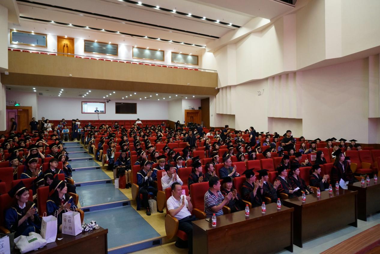 紧接着进入学位授予仪式环节,贾陆依副院长和张丹阳副院长分别宣读了2023届本科学士学位、2023届硕士研究生学位授予决定。随后,戴永红院长依次为毕业生拨帽穗、颁发学位证书,一一为学子们送上祝福。