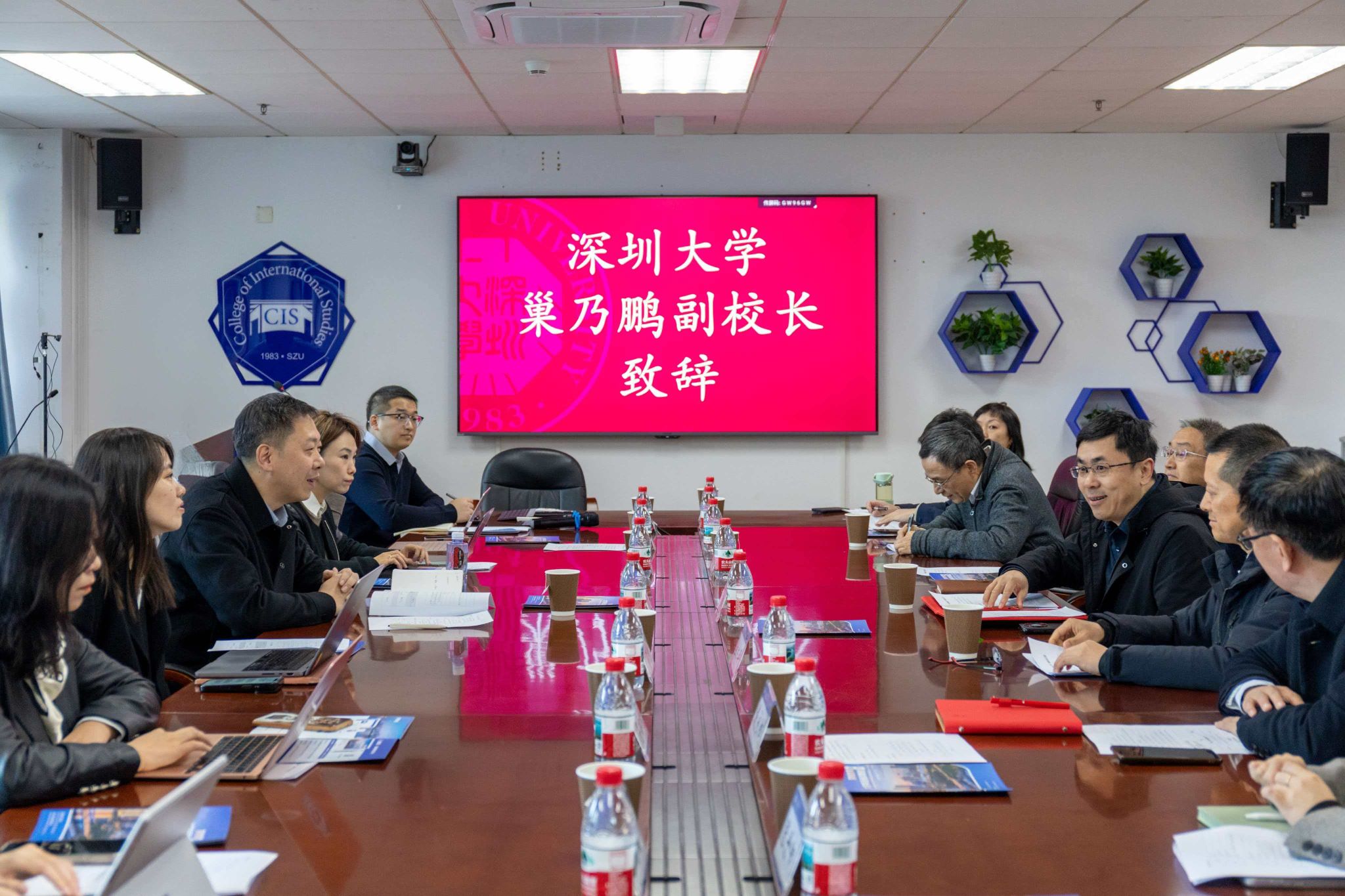 巢乃鹏对刘欣路一行到访表示热烈欢迎,并全面介绍了深圳大学的建校历程、治理架构、学生培养及师资队伍建设等基本情况。刘欣路对深圳大学的热情接待表示诚挚谢意,并介绍了北外学科建设的特色优势及当前发展中面临的现实课题,表示希望学习借鉴深圳大学先进经验、推进契合北外校情的数字教材建设。