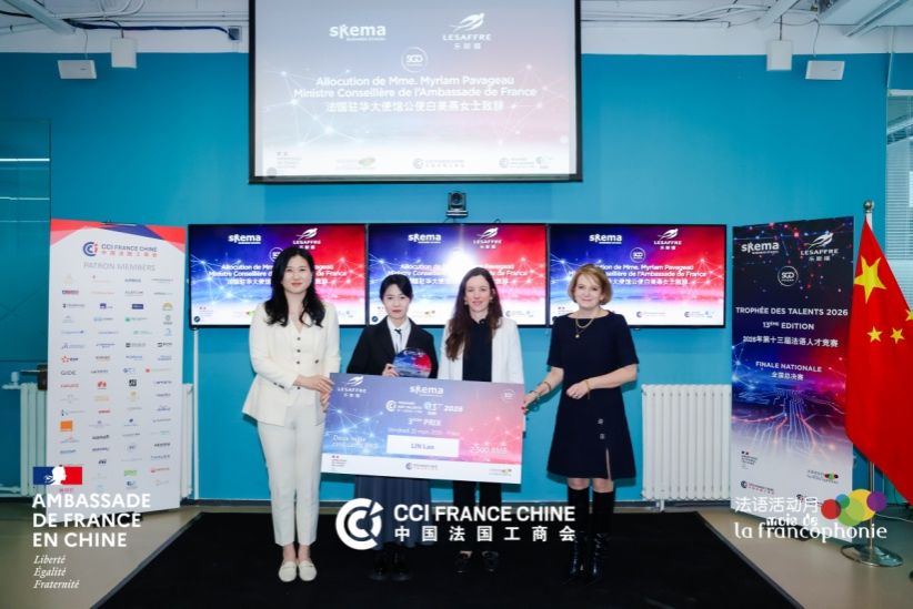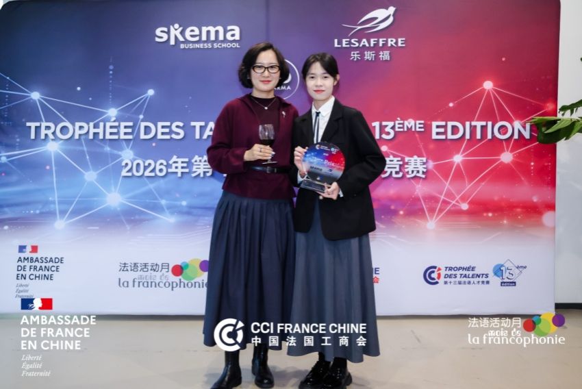 2026年3月20日,第十三届法语人才竞赛(Trophée des Talents)全国总决赛在中国法国工商会(北京)圆满落幕。深圳大学外国语学院法语专业2023级本科生林澜同学在激烈角逐中脱颖而出,以华南地区冠军的身份晋级全国总决赛,与华东、华北地区冠军同台竞技,最终斩获“全国季军”的优异成绩。