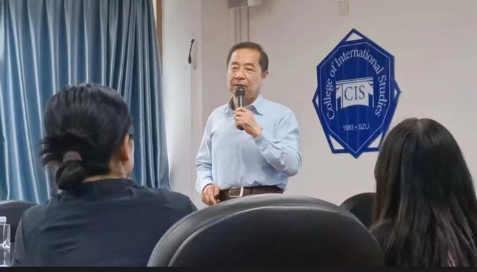 2023年5月12日下午,应深圳大学外国语学院邀请,教育部外语本科专业教学指导委员会副主任委员、法语专业教学指导分委员会主任委员、国家教材委员会专家委员会委员、中国法语教学研究会会长、教育部评估中心本科评估专家曹德明教授来我校做《加强国际传播能力建设,培养法语专业时代新人》的主题讲座。