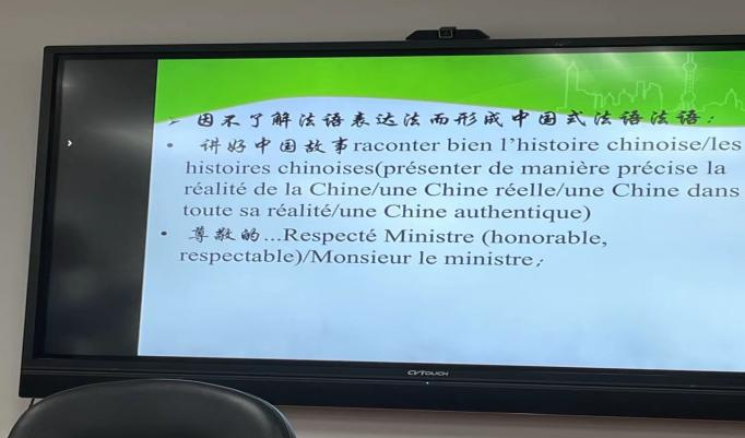就目前法语学习的不足,曹教授指出,我们应遵守法语语言严谨的表达规范,要用外国人讲话的方式来讲好中国故事。曹教授举了许多真实生动的例子,鼓励学外语的同学要在语言学习上多下功夫,使用地道的表达,这样才能在跨文化交流中作出有效的正面交流。同时他指出对于法语专业的建设、高质量人才的培养,教师要拓宽学生的视野,需要“立场”和“能力”两手抓。让学生明确“中国立场”,坚定走中国人自己的道路;培养扎实的语言能力,从而有跨文化交流的能力。曹教授发出殷切期盼,希望同学们将来能在国际舞台、国际学术会议上用中国的话语方式发声,维护中国的利益。