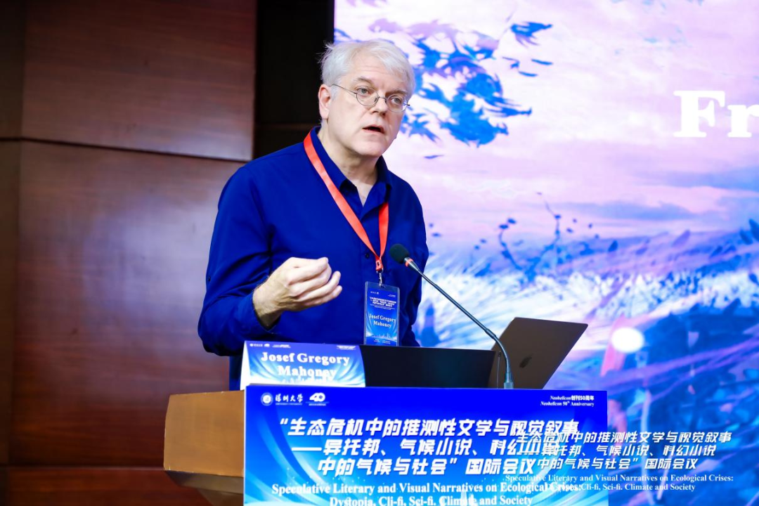华东师范大学Josef Gregory Mahoney教授总结了围绕Earth Abides(《地球忍受》)(1949)和Science Fiction:If There Were Tomorrow(《科幻小说:如果明天存在》)(2023)两部作品,展开讨论了疫病、气候变化以及人类难以想象的未来等,强调了历史背景、文学作品对艺术展览的影响,同时指出艺术家对于过去崩溃的经历以及对当前社会风险和未来平等可能性的反思。