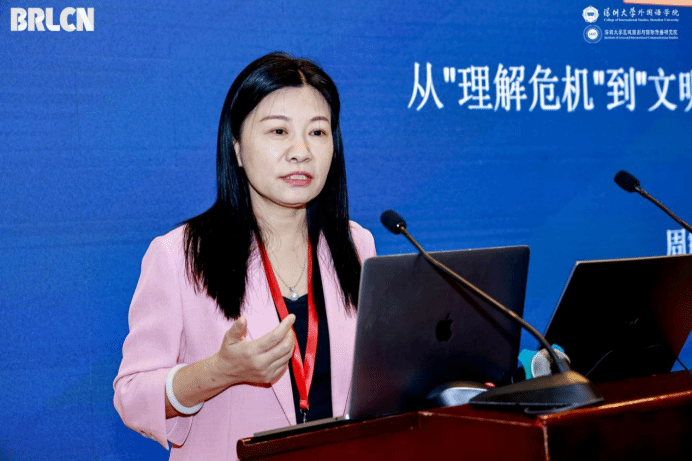 周敏教授以“区域国别学与国际传播的协同创新路径”为题作主旨报告。她从国际传播所面临的困境出发,阐释了区域国别学对国际传播的理论与实践支撑,进而提出从“理解危机”到“文明共建”的新路径。她指出,区域国别学与国际传播二者相互赋能、共生共长。新时代的国际传播应以文明互鉴为核心理念,推动平等对话与知识共创,助力构建人类命运共同体。