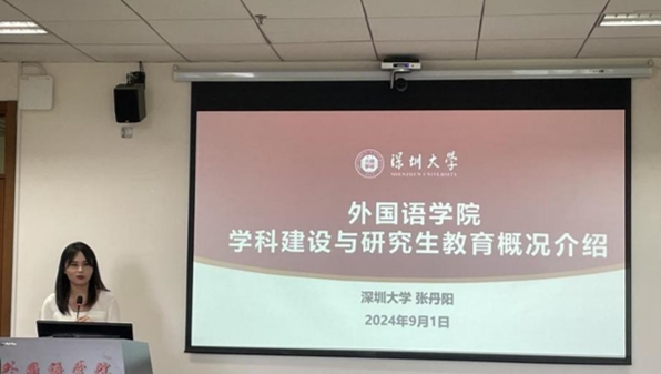 张丹阳副院长清晰地阐述了深圳大学以及深圳大学外国语学院的历史沿革、校园环境、专业设置、师资概况、实习实践、国际交流等重点内容,并着重强调学校及学院对于人才培养的重视,尤其是在对学生的毕业深造及就业工作方面提供了强有力的支持。