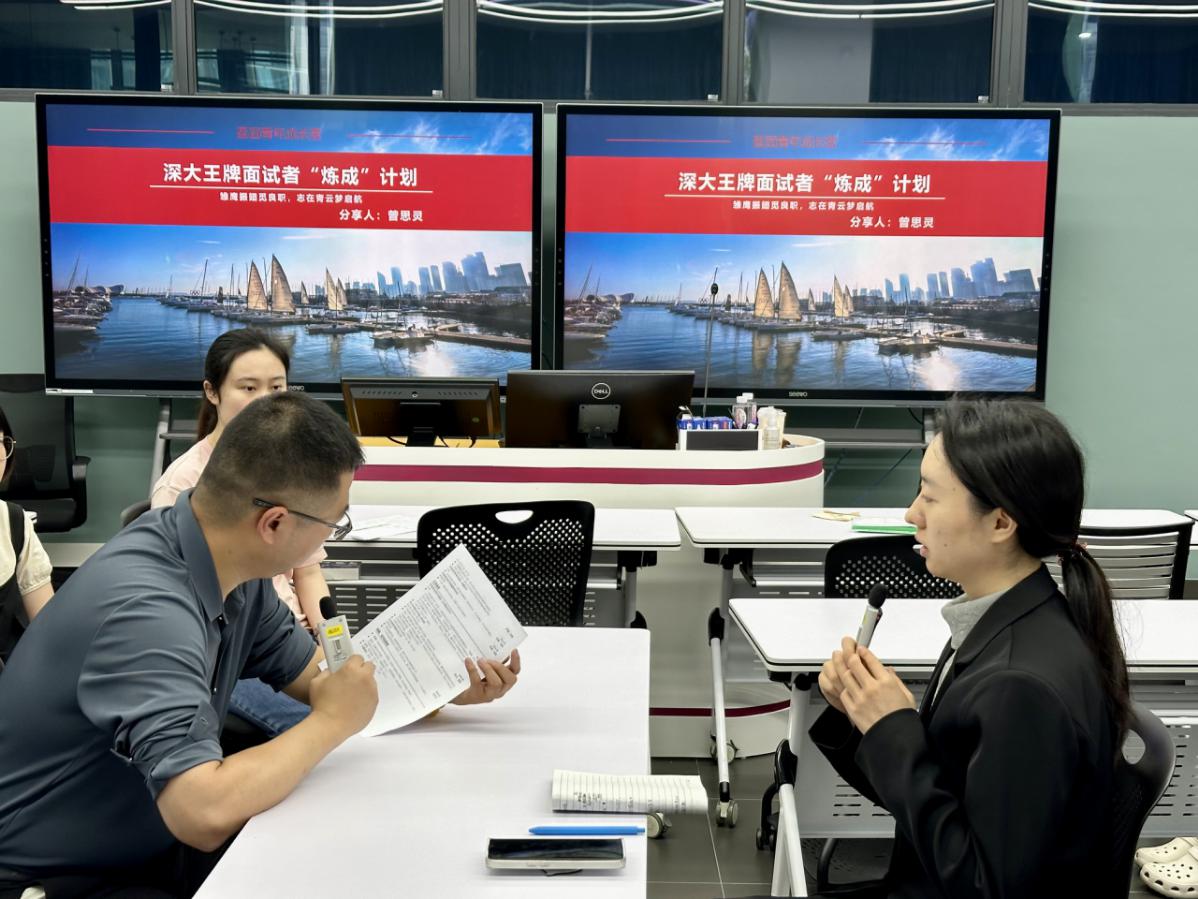 4月20日,由“勇往职前”求职面试工作室联合化学与环境工程学院、材料学院、外国语学院共同举办的“王牌面试者‘炼成’计划”工作坊活动,在丽湖校区四方楼南201室成功举行。讲座特邀深圳市国富黄金股份有限公司人力资源部总监、企业人才发展官、企业面试官培训讲师曾思灵先生,为同学们传授简历撰写与面试的独门秘籍。活动由外国语学院党委副书记、求职面试工作室负责人李慧敏老师主持,共有40余名热切求知的同学参与了活动。