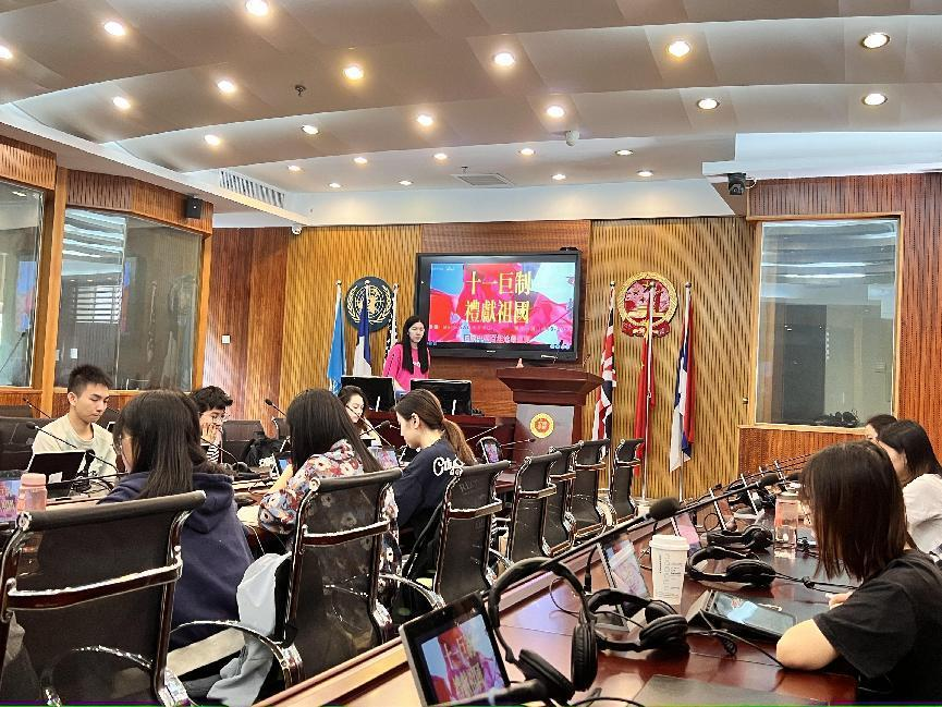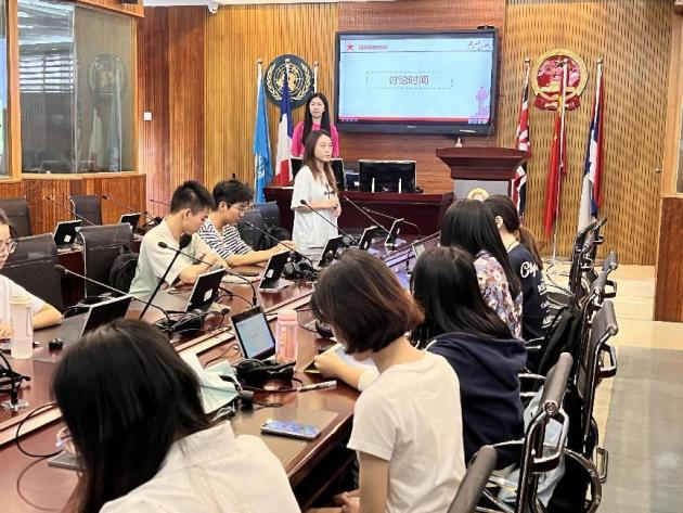 会议初始,团委骨干梁颖欣带领学员们回看建国历史。