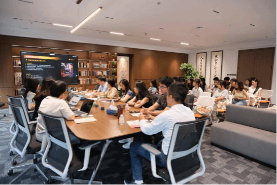 2025年9月19日下午,深圳大学外国语学院党委副书记李慧敏、副院长贾陆依带队,师生一行24人走进枫叶互动科技有限公司,开展一场以“调研产业需求、深化产教融合”为核心目标的企业参访。通过实地探访、深度对话,让师生沉浸式触摸微短剧出海行业脉搏,为学院探索“外语+”复合型人才校企协同培养模式按下“加速键”。
