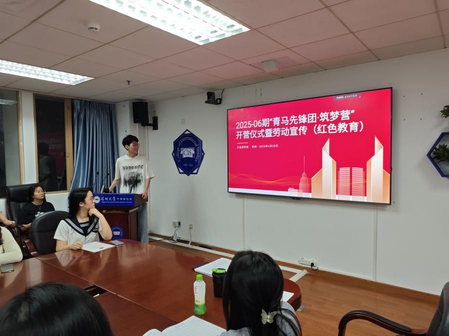 为深入学习贯彻习近平新时代中国特色社会主义思想和党的二十大精神,认真贯彻落实习近平总书记关于青年工作的重要思想,深圳大学外国语学院团委于4月28日在汇文楼举办2025-06期“青马先锋团·筑梦营”开营仪式暨第一次集中学习。团委骨干陈叙亨主持本次会议,参加此次开营仪式的有外国语学院团委骨干及本期45位青马学员。