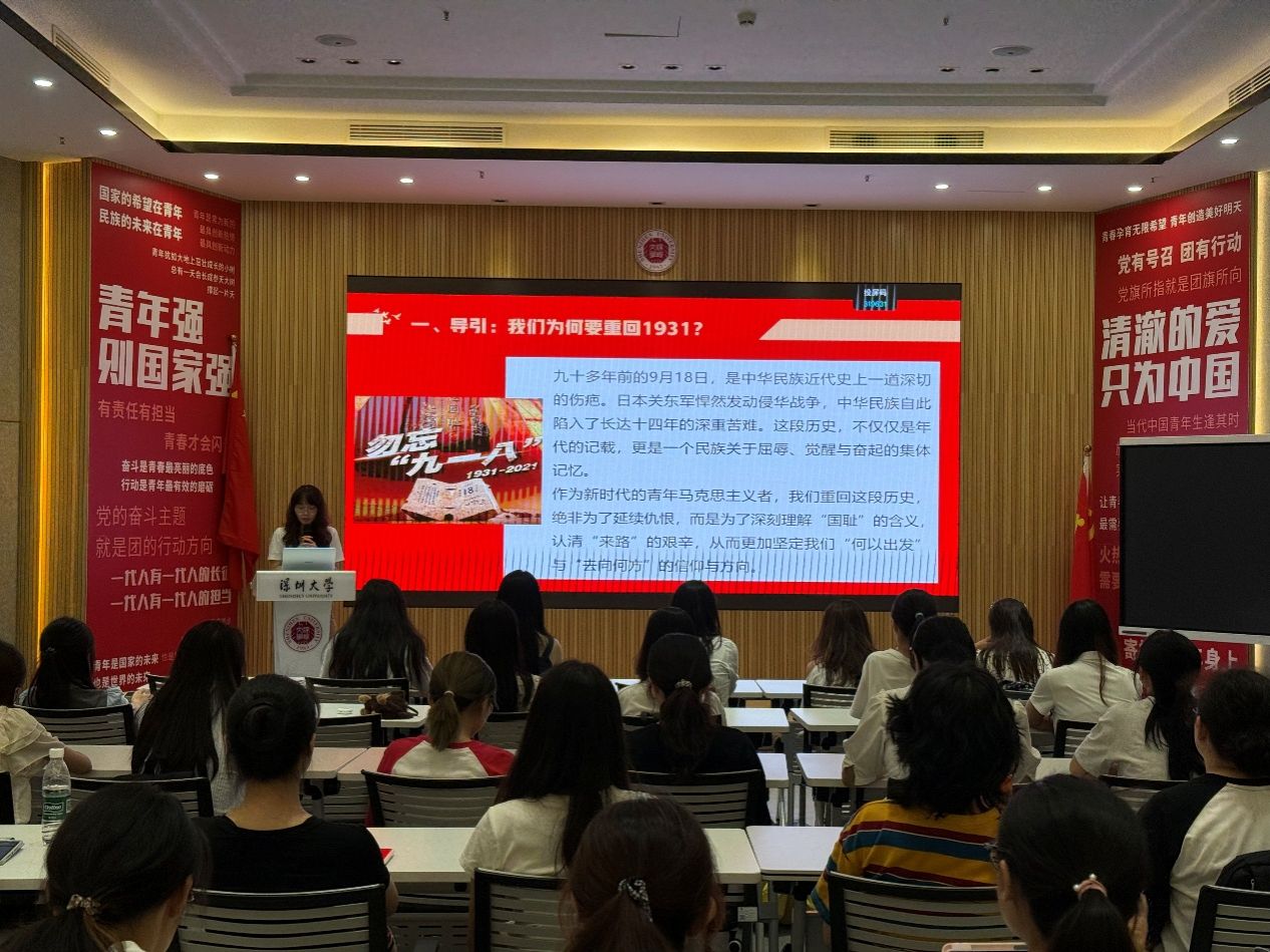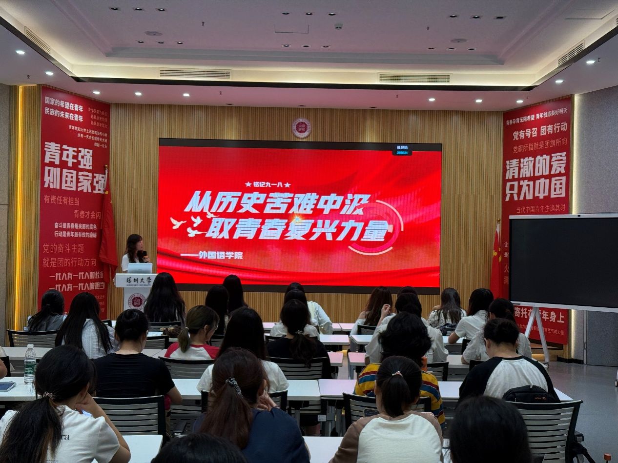 本次学习立足“九一八”历史背景,以爱国主义教育为主线,融合青年理想与时代使命,为外国语学院青年指明奋进方向。新时代青年已接过历史的接力棒,当以语言为桥、以文化为舟,坚定理想信念,锤炼专业本领,勇担沟通中外之责,将爱国之情转化为报国之行。愿外国语学院青年以此为励,胸怀家国,融通中外,在民族复兴征程中贡献卓越青春力量!