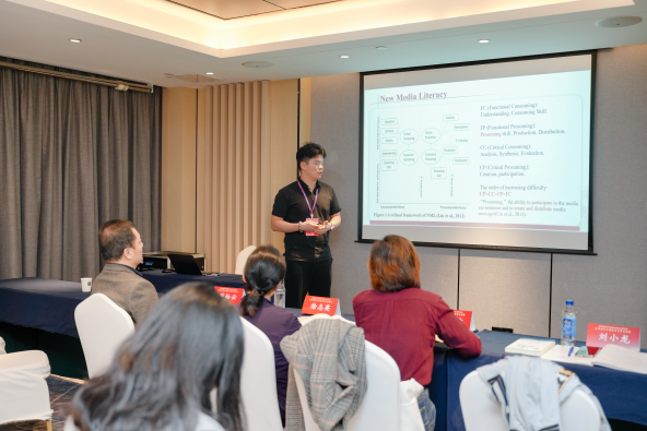 2024年11月8日至10日,中国高等教育学会外语教学研究分会2024年学术年会在重庆召开。本届年会由四川外国语大学承办,主题为“数智时代外语教育变革与创新”。深圳大学外国语学院硕士生刘小龙、温蓝玉参会并在特邀专题发言。在“数智时代外语学习研究”主题论坛中,刘小龙同学聚焦初中生新媒介素养教育与英语教育,进行了题为Learning Effectively and Critically: A Correlation Study of the New Media Literacy and English Learning Self-efficacy of Junior High School Students的论文分享。此外,温蓝玉同学基于实证数据,剖析了人工智能对于英语学习的潜在风险,进行了题为Prevent Pitfalls behind Promises: A Framework for Assessing Chinese University EFL Students’ Risk Management Capabilities in Using Generative AI for English Language Learning的主题发言。两位同学的发言均得到了评委的高度评价。两位同学均认同数智时代外语教育在服务强国建设和外语教育创新的重要作用,认为广大外语教师和学生要掌握人工智能语言教学与科研工具,不断提升人工智能素养。此外,刘小龙同学今年还荣获了2024粤港澳大湾区学术交流周大奖赛三等奖、湘潭大学暑期学校“优秀学员”、2024年复旦博士生学术论坛之外文篇三等奖、内蒙古大学外国语学院第二届研究生学术论坛二等奖等奖项。