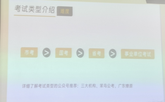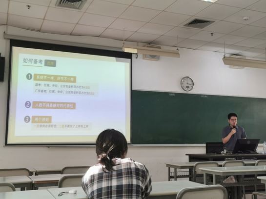 本次交流会主要分为考试类型介绍、为什么选择考公、如何备考以及个人建议四个部分。其中,吴润铠着重为同学们讲解了如何备考,并结合自身经验提出了详细建议。