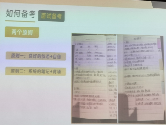 面试方面,吴润铠建议大家报班进行集中系统的学习,并介绍了三大面试形式:结构化面试、无领导小组讨论以及结构化小组。其中,吴润铠强调了良好的仪态与自信的重要性,建议同学们平时系统地梳理笔记,积累每个话题的思路、过渡语和论据,并进行背诵,还可以通过对镜练习发现并改进自己的不足。