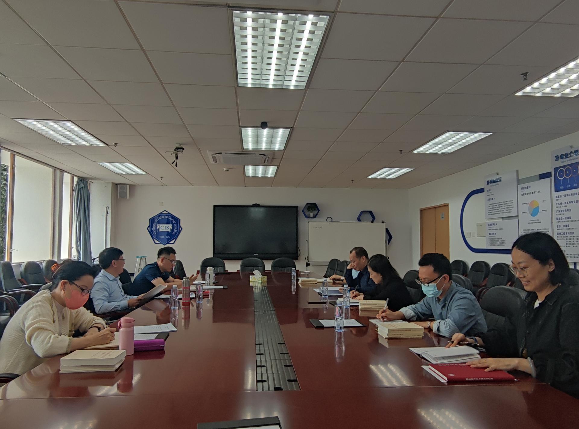 根据主题教育工作部署和读书班学习安排,5月9日上午,在汇文楼1200会议室,深圳大学学习贯彻习近平新时代中国特色社会主义思想主题教育读书班外国语学院党委分会场开展集中学习研讨暨党委理论学习中心组学习,集中学习党的二十大报告和习近平总书记关于教育的重要论述,围绕“深入学习贯彻习近平新时代中国特色社会主义思想,铸魂育人,积极构建新时代外语复合型人才培养体系”进行研讨。学院党政领导班子、党员代表参加。党委书记邱江平主持。