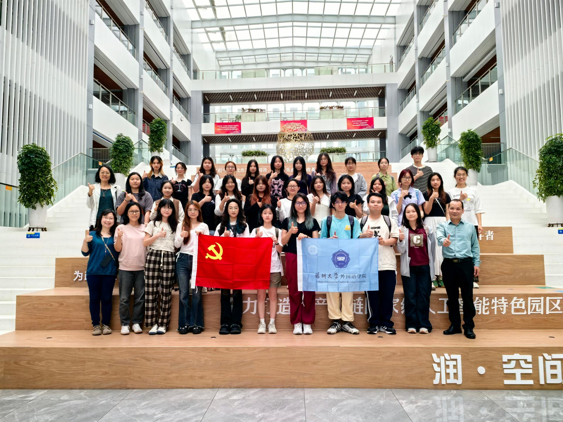 2025年3月14日,深圳大学外国语学院党委分党校开展党性国情教育活动暨行走的思政课,党委书记邱江平带领学生党支部师生党员及34名入党积极分子和发展对象走进龙岗区大运AI小镇“亲清”空间,了解人工智能和高新技术发展情况,开展党纪学习教育,引导党员师生增强纪律意识,筑牢思想防线,弘扬清正廉洁新风尚。